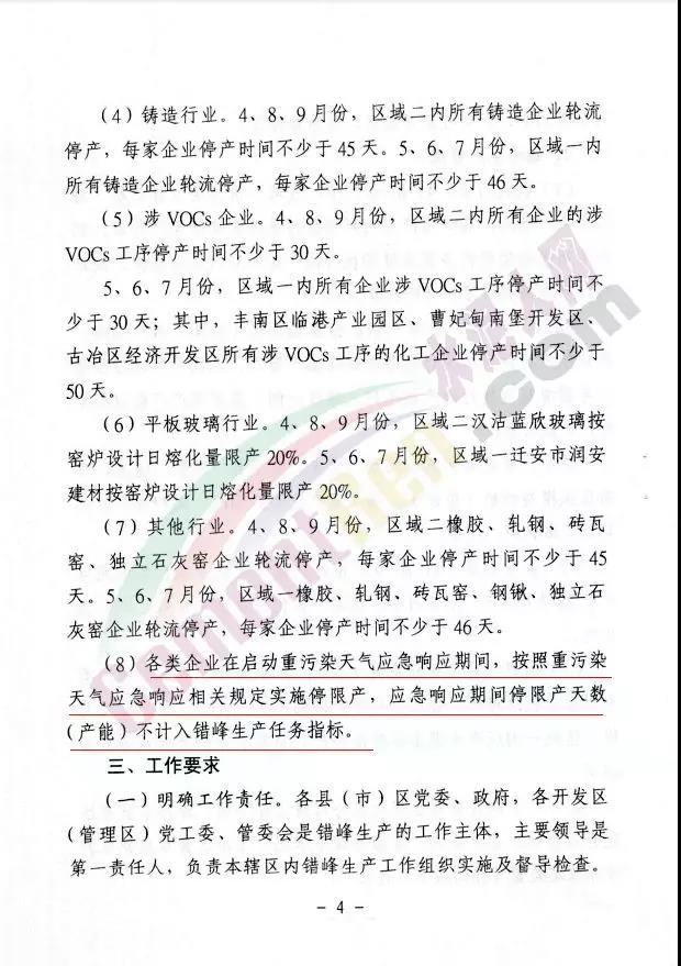 各類企業(yè)在啟動(dòng)重污染天氣應(yīng)急響應(yīng)期間,按照重污染天氣應(yīng)急響應(yīng)相關(guān)規(guī)定實(shí)施停限產(chǎn),應(yīng)急響應(yīng)期間停限天數(shù)(產(chǎn)能)不計(jì)入錯(cuò)峰生產(chǎn)任務(wù)指標(biāo)。文件原文如下: