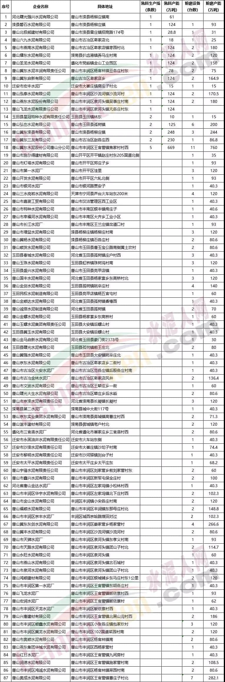 其中,豐潤(rùn)區(qū)冀東水泥有限公司唐山分公司、灤州市冀東水泥有限公司灤縣 分公司、灤南縣耀東水泥、古冶區(qū)冀東啟新水泥按照核定處置污染的最低負(fù)荷生產(chǎn)。