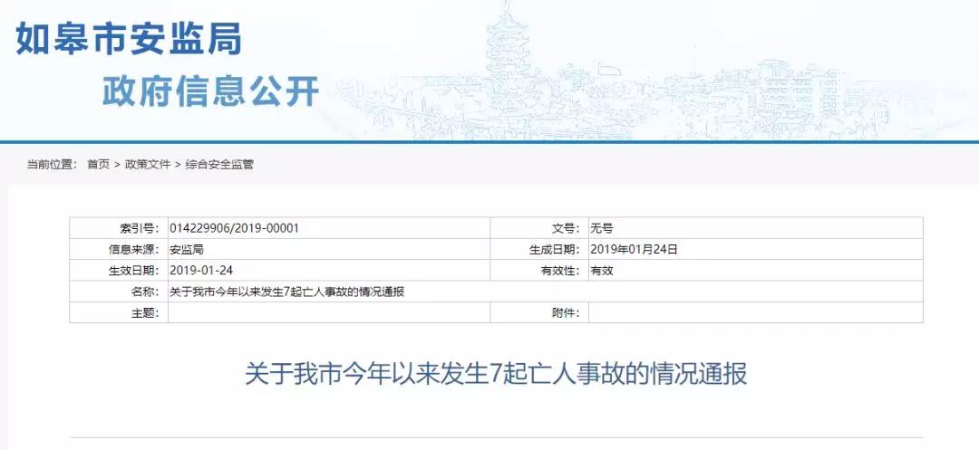 5.2019年1月13日23時(shí)40分接報(bào),位于如皋市經(jīng)濟(jì)技術(shù)開(kāi)發(fā)區(qū)的南通匯通腸衣有限公司在肝素車(chē)間污水池發(fā)生一起有限空間作業(yè)事故,造成2人死亡。