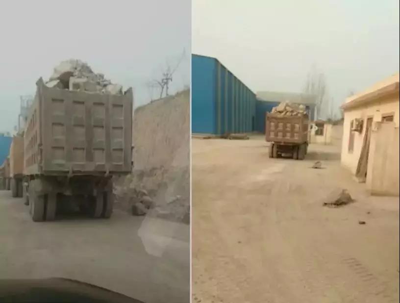 可是山西中條山新型建材有限公司的后門卻是另一道"風(fēng)景"了,工廠后門,大約有七八輛貨車橫七豎八的停放在門口準(zhǔn)備進(jìn)廠運(yùn)送原料,全部車輛裝滿石頭,不蓋篷布,這些車輛既沒有牌照、還加高超載,貨廂上的石頭隨時(shí)有掉落的危險(xiǎn),對人身安全造成了嚴(yán)重的威脅。