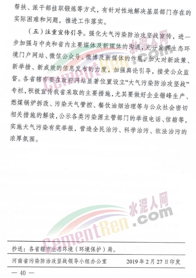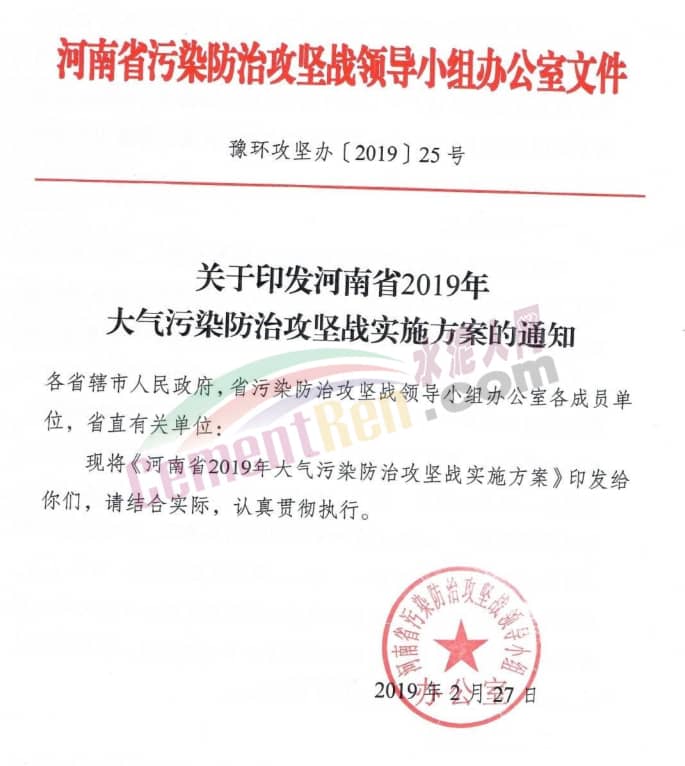 近日,河南省污染防治攻堅(jiān)戰(zhàn)領(lǐng)導(dǎo)小組辦公室發(fā)布《關(guān)于印發(fā)河南省2019年大氣污染防治攻堅(jiān)戰(zhàn)實(shí)施方案的通知》,該文件對(duì)于河南省水泥行業(yè)錯(cuò)峰生產(chǎn)及環(huán)保治理提出了史上最嚴(yán)的要求。