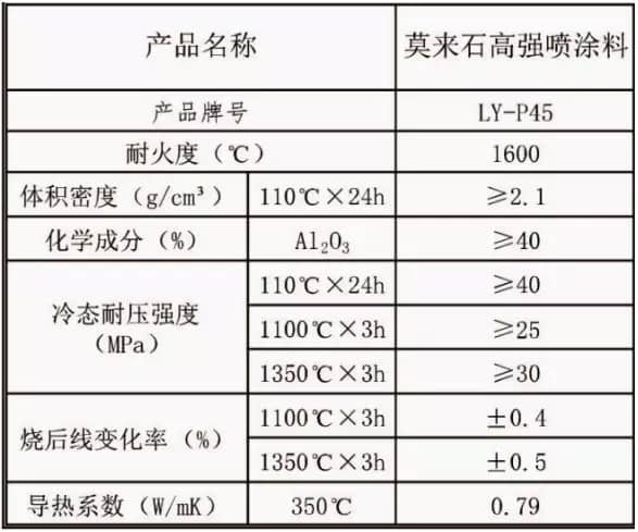 莫來(lái)石高強(qiáng)噴涂料理化指標(biāo):