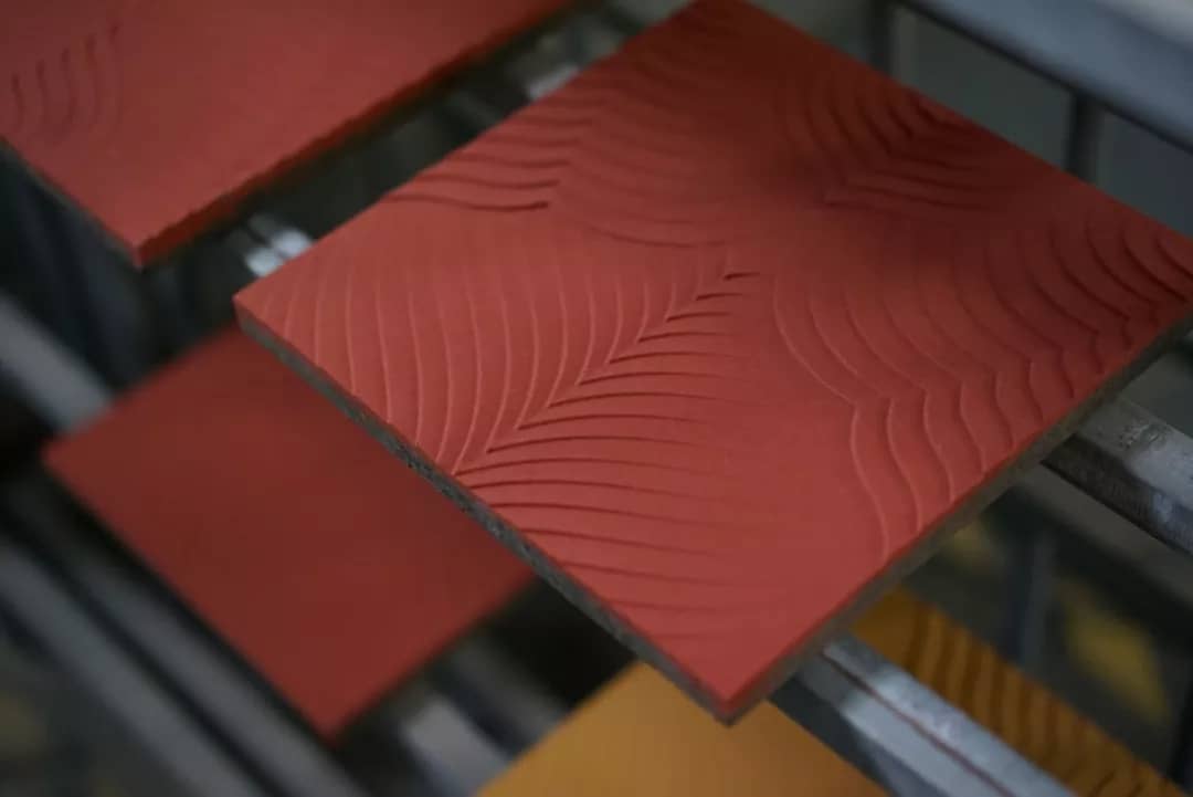 設(shè)計上?,F(xiàn)場將正式展示NAOO1O款的水泥立體花磚拼貼效果,以僧袍的色彩——橘紅為主色應(yīng)用。蔣晟的日常工作是為佛造型,他以建筑的視角思考水泥立體花磚的設(shè)計,將佛像的元素抽象、簡化,為水泥花磚賦予新的美學(xué)。