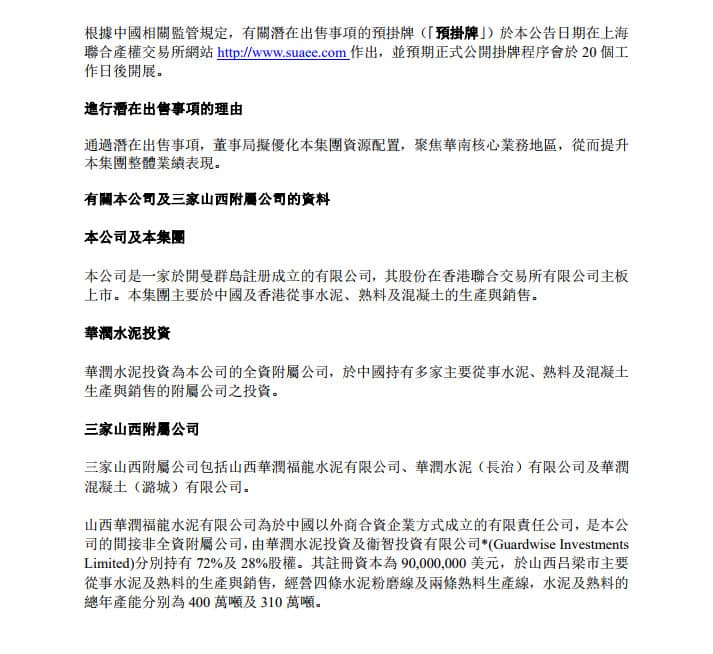 公告稱,在能夠?qū)崿F(xiàn)叁家山西附屬公司聯(lián)合出售的商業(yè)目標(biāo)之前,該公司將持續(xù)優(yōu)化經(jīng)營(yíng)管理,提升經(jīng)營(yíng)效率及效益,未來根據(jù)市場(chǎng)情況適時(shí)調(diào)整戰(zhàn)略發(fā)展方案。公告原文如下: