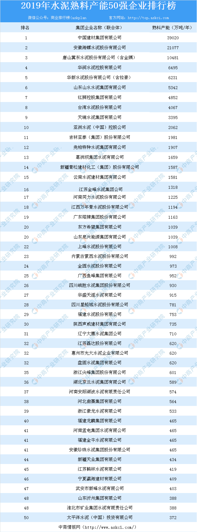 6.統(tǒng)計(jì)排名前后的企業(yè)之間熟料產(chǎn)能相差1%以內(nèi)的采取并列排名,并列不分前后。