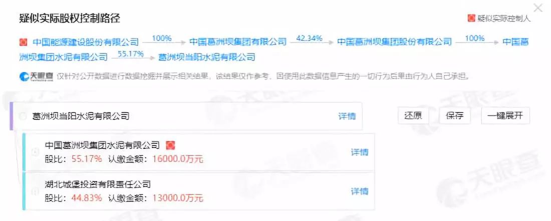 天眼查數(shù)據(jù)顯示:葛洲壩當(dāng)陽水泥為中國葛洲壩集團(tuán)水泥有限公司和湖北城堡投資有限責(zé)任公司合資,由中國葛洲壩集團(tuán)水泥有限公司控股。
