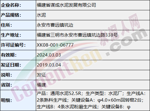 福建省謀成水泥發(fā)展有限公司