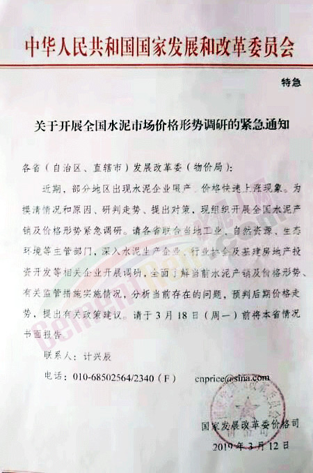 請各省聯(lián)合當(dāng)?shù)毓I(yè),自然資源,生態(tài)環(huán)境等主管部門,深入水泥生產(chǎn)企業(yè)、行業(yè)協(xié)會及基建房地產(chǎn)投資開發(fā)等相關(guān)企業(yè)開展調(diào)研。全面了解當(dāng)前水泥產(chǎn)銷及價(jià)格形勢、有關(guān)監(jiān)管措施實(shí)施情況,分析當(dāng)前存在的問題,預(yù)判后期價(jià)格走勢,提出有關(guān)政策建議。并于3月18日(周一)前將各省情況書面報(bào)告。通知原文如下: