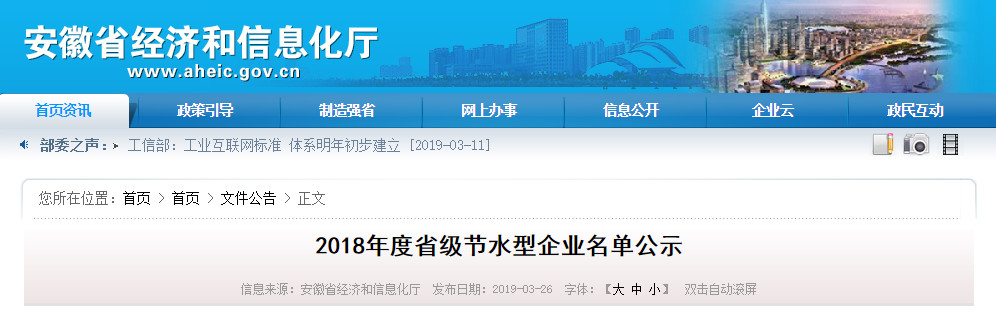 經(jīng)省水利廳、省經(jīng)濟(jì)和信息化廳組織專家評(píng)審,廬江縣凱迪綠色能源開發(fā)有限公司等70家企業(yè)被評(píng)為2018年度省級(jí)節(jié)水型企業(yè)。根據(jù)有關(guān)規(guī)定,現(xiàn)將評(píng)審?fù)ㄟ^的企業(yè)名單(見附件)予以公示,公示時(shí)間從2019年3月26日至4月3日,公示期間如對(duì)通過評(píng)審企業(yè)持有異議,請(qǐng)以書面形式向省經(jīng)信廳節(jié)能處反映。
