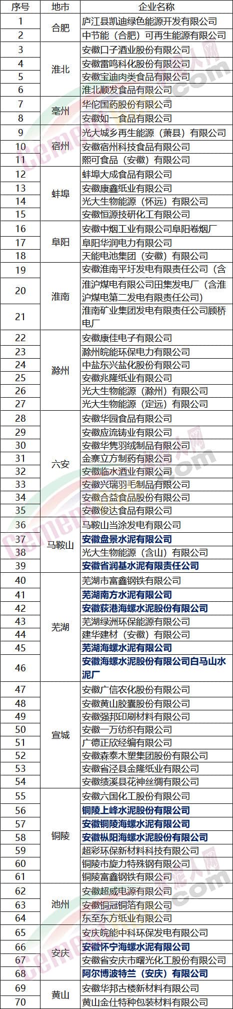 日前,水泥人網(wǎng)自安徽省經(jīng)濟(jì)和信息化廳了解到共有70家企業(yè)被評(píng)為2018年度省級(jí)節(jié)水型企業(yè)。其中水泥行業(yè)安徽荻港海螺水泥股份有限公司、蕪湖海螺水泥有限公司、安徽海螺水泥股份有限公司白馬山水泥廠、安徽銅陵海螺水泥有限公司、安徽樅陽(yáng)海螺水泥股份有限公司、安徽懷寧海螺水泥有限公司及安徽盤景水泥有限公司、安徽省潤(rùn)基水泥有限責(zé)任公司、銅陵上峰水泥股份有限公司、阿爾博波特蘭(安慶)有限公司也榜上有名。 安徽省經(jīng)濟(jì)和信息化廳名單公示原文如下: