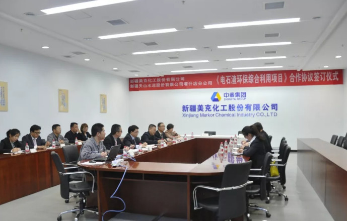 座談結(jié)束后,隨后雙方舉行合作協(xié)議簽訂儀式?!峨娛h(huán)保綜合利用項(xiàng)目》是由美克化工全額投資對(duì)塔什店天山水泥公司熟料生產(chǎn)線進(jìn)行技術(shù)改造,由天山水泥提供建設(shè)場(chǎng)地,項(xiàng)目建成后美克化工將合格電石渣免費(fèi)拉運(yùn)至天山水泥廠區(qū)內(nèi),項(xiàng)目建成后可消耗美克化工生產(chǎn)過(guò)程產(chǎn)生的全部電石渣,變工業(yè)廢渣為建筑資源,節(jié)約資源、能源,變廢為寶,符合國(guó)家節(jié)能降耗、發(fā)展循環(huán)經(jīng)濟(jì)的產(chǎn)業(yè)政策,符合國(guó)家節(jié)約土地政策和有關(guān)環(huán)境保護(hù)新規(guī)定。