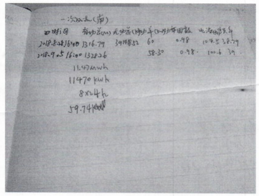 2018年11月16日,雙方相關(guān)人員再次測試數(shù)據(jù)為壓力52.84Kpa,功率為45.8kw,實測電流為72.9A,68.6A,66.2A,與10月22日測數(shù)據(jù)相差無幾。