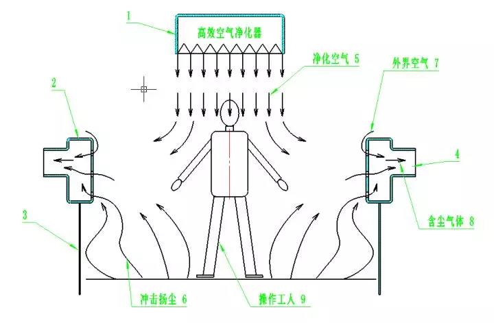 2)、含塵氣流不能從操作工面部通過。保證操作工人呼吸區(qū)空氣滿足職業(yè)衛(wèi)生要求;