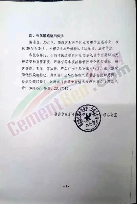 就在前幾天,河北唐山市豐潤區(qū)和古冶區(qū)也曾發(fā)布類似加嚴錯峰生產(chǎn)的文件。其中古冶區(qū)要求轄區(qū)重點工業(yè)企業(yè)在落實《6月份古冶區(qū)大氣污染防治強化管控方案》的基礎(chǔ)上,進一步采取強化管控措施。管控時間從6月12日至6月30日;管控措施要求在管控時間內(nèi)全工藝水泥企業(yè)和粉磨站全部停產(chǎn);對超標排放、非法排污企業(yè)高限處罰,并做好與環(huán)安大隊的配合銜接。區(qū)環(huán)安大隊要主動出擊,加大對不落實管控措施等涉刑事污染犯罪行為打擊力度。各鄉(xiāng)鎮(zhèn)街落實屬地監(jiān)管責(zé)任,對轄區(qū)內(nèi)所有停限產(chǎn)企業(yè)的實施巡查監(jiān)管。負責(zé)組織對納入停限產(chǎn)范圍的企業(yè)采取斷電措施或在主要生產(chǎn)裝備和配電設(shè)張貼停產(chǎn)封條。