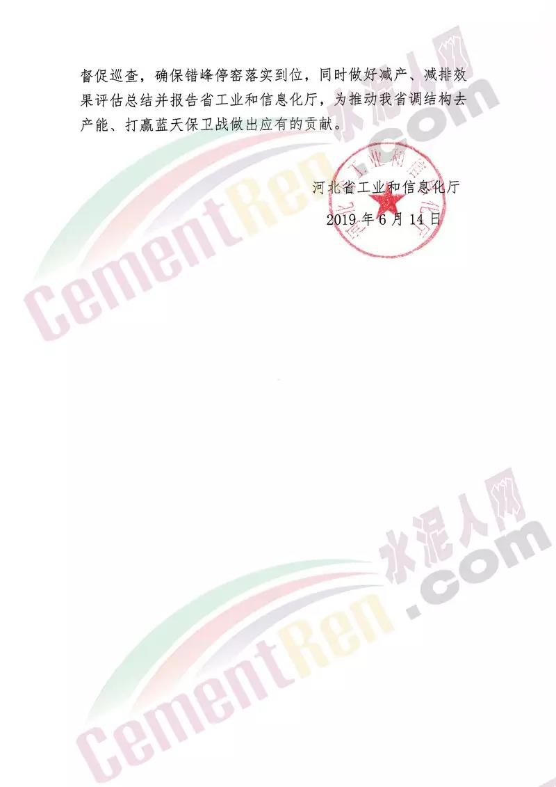 水泥人網(wǎng)通訊員消息:日前,河北省工業(yè)和信息化廳復(fù)函給河北省建筑材料工業(yè)協(xié)會稱:河北省建材工業(yè)協(xié)會《關(guān)于懇請支持全省水泥熟料企業(yè)實(shí)施夏季錯峰生產(chǎn)的函》(冀建協(xié)【2019】10號)已收到,經(jīng)研究做出回復(fù)。主要內(nèi)容為鼓勵支持協(xié)會通過夏季兩次錯峰停窯減少污染物排放、維護(hù)水泥行業(yè)持續(xù)穩(wěn)定健康發(fā)展的舉措。