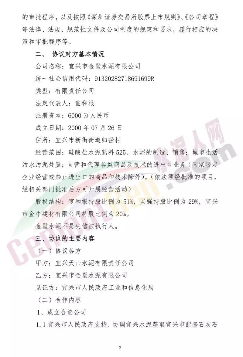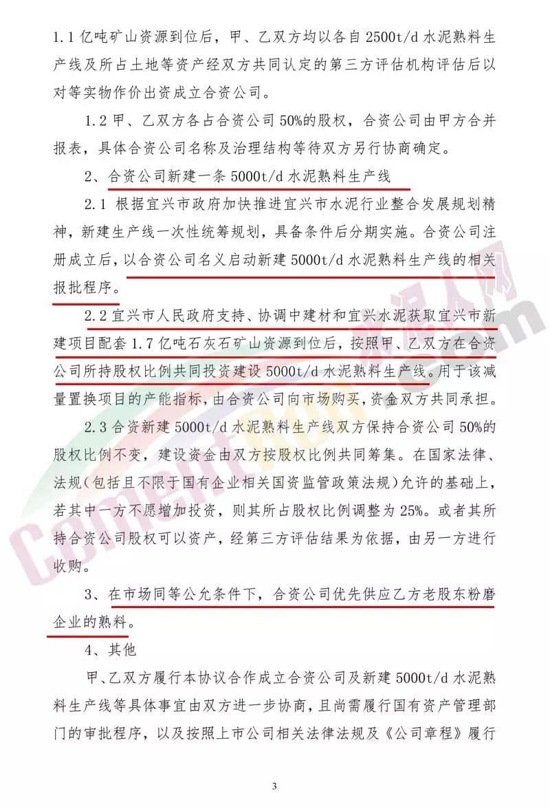 甲、乙雙方履行本協(xié)議合作成立合資公司及新建 5000t/d 水泥熟料生產(chǎn)線(xiàn)等具體事宜由雙方進(jìn)一步協(xié)商,且尚需履行國(guó)有資產(chǎn)管理部門(mén)的審批程序,以及按照上市公司相關(guān)法律法規(guī)及《公司章程》履行相應(yīng)的決策和審批程序,審批后雙方另行簽訂具體協(xié)議生效實(shí)施。公告原文如下:
