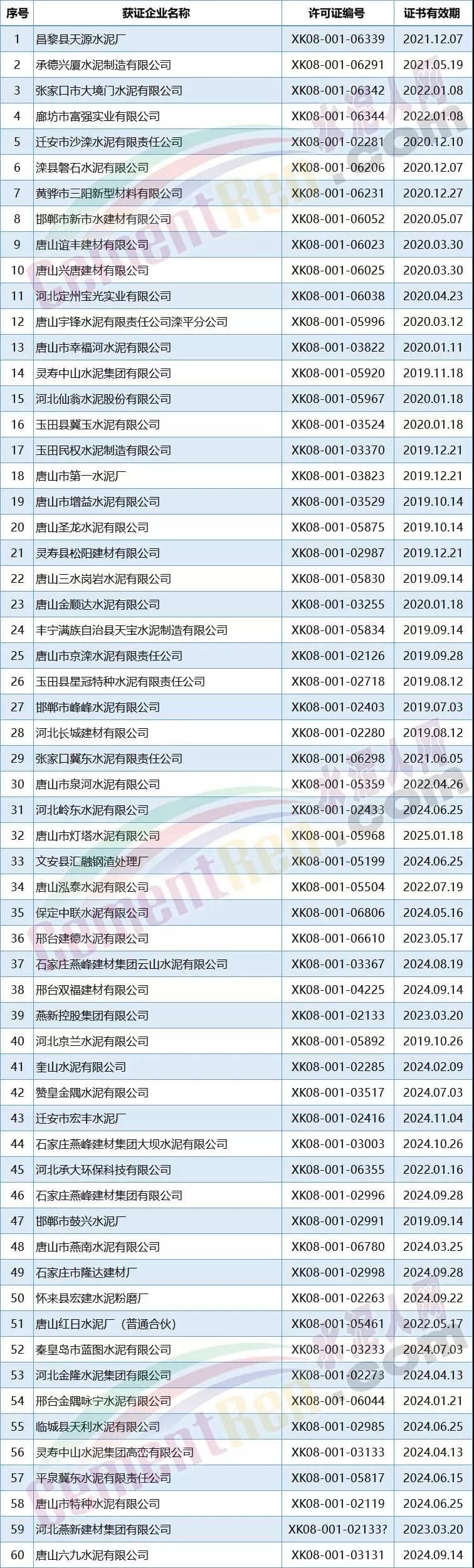河北省部分水泥企業(yè)名單如下: