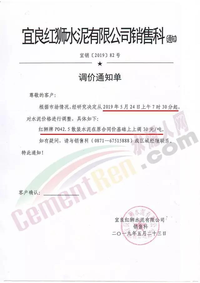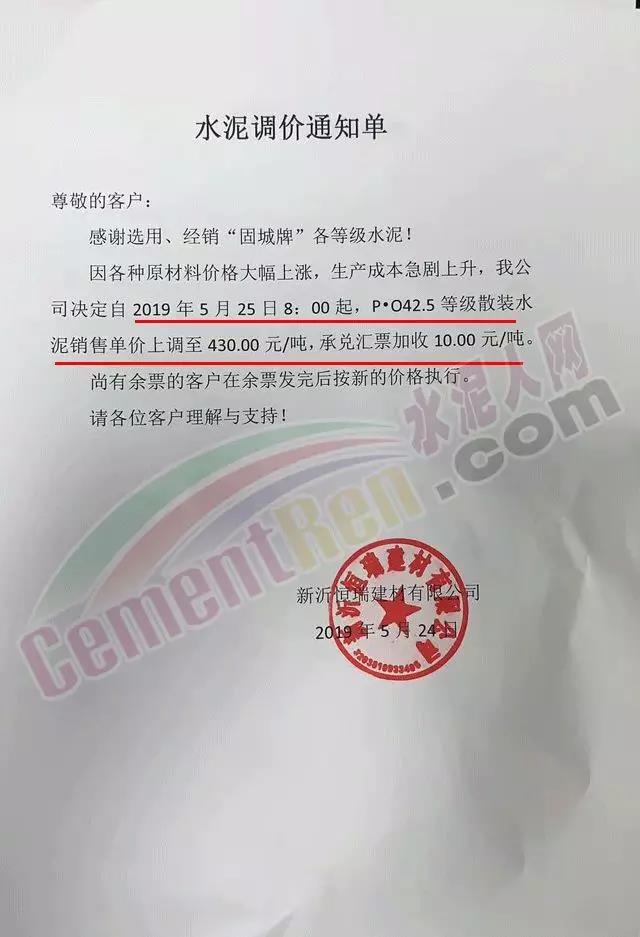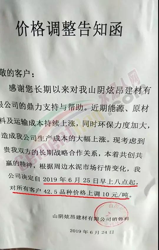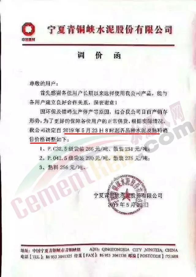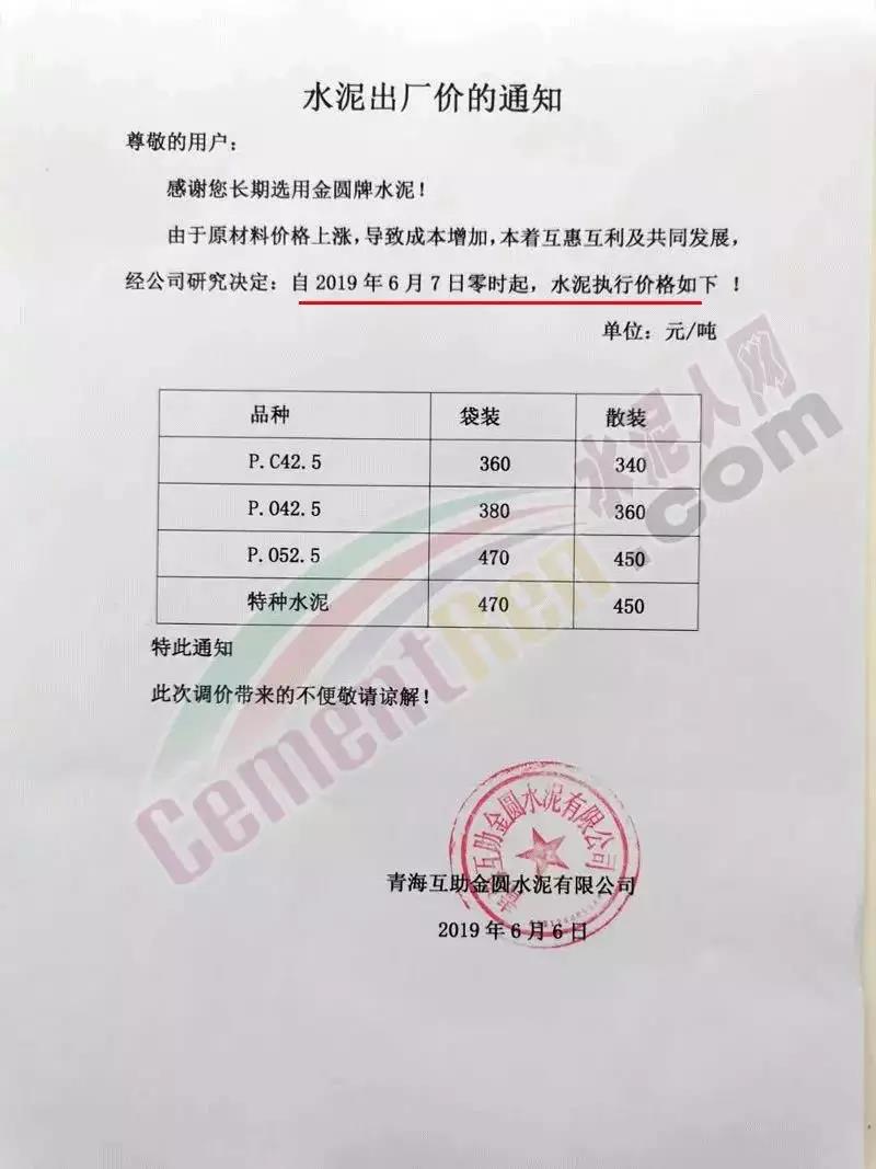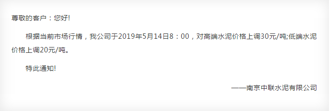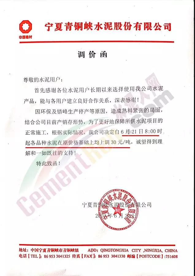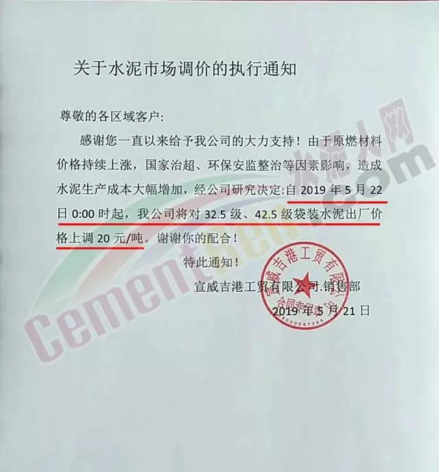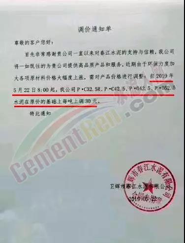 同期,區(qū)域內中聯(lián)水泥及海螺水泥全資子公司中國水泥廠也發(fā)布了調價通知。