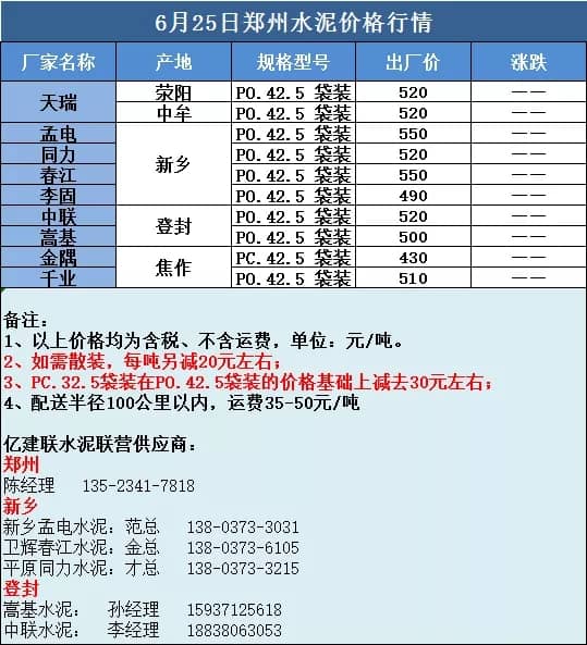 6月25日河南水泥小幅上漲