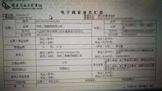 并且中鐵二局公司已經(jīng)向公安機關(guān)報案,請各機構(gòu)、社會公眾注意風(fēng)險,不要接收該類商業(yè)承兌匯票、不要進行貼現(xiàn)、交易,造成的損失中鐵二局不承擔(dān)責(zé)任。 說白了這票和中鐵二局沒有關(guān)系,到期可能無法兌付。