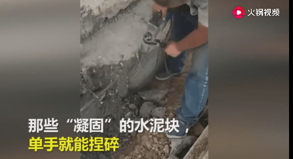 7月9日,鹿邑縣志成實(shí)驗(yàn)學(xué)校校長(zhǎng)張光啟對(duì)記者出示了工人清除問題水泥時(shí)的視頻。那些“凝固”的水泥塊,單手就能捏碎。為了把那些劣質(zhì)水泥清除干凈,“后期工人們是用手一塊一塊把水泥摳下來(lái)的”。
