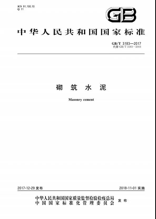 GB/T3183-2017《砌筑水泥》國家標(biāo)準(zhǔn)實(shí)施日期為2018年11月1日,從其內(nèi)容來看,更象是全面取消GB175標(biāo)準(zhǔn)中的32.5標(biāo)號(hào)“打補(bǔ)丁”。