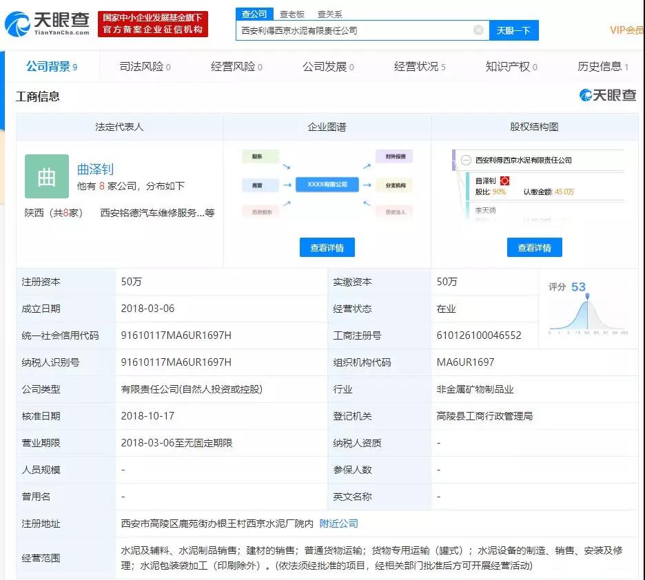 據(jù)查詢,這家名為西安利得西京水泥有限責(zé)任公司的企業(yè)注冊(cè)地址位于西安市安陵區(qū)鹿苑街辦銀王村西京水泥廠院內(nèi)。