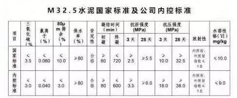 浙江寧波、強蛟和象山海螺新近推出的M32.5水泥的國家標(biāo)準(zhǔn)與海螺水泥工廠內(nèi)控標(biāo)準(zhǔn)對比。海螺水泥工廠的內(nèi)控要求三氧化硫,氯離子含量,80um篩余量,凝結(jié)時間(包括初凝和終凝)以及抗折強度、抗壓強度、水溶鉻方面均高于國家標(biāo)準(zhǔn)。