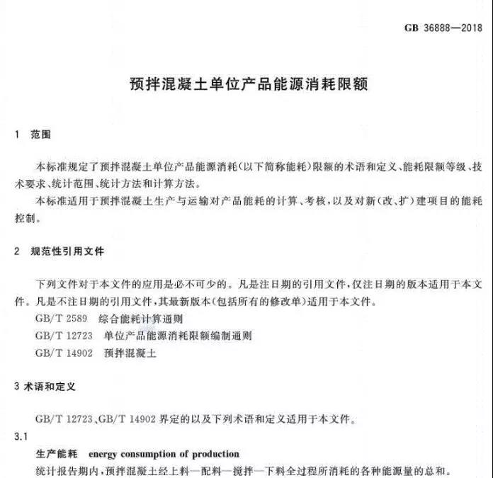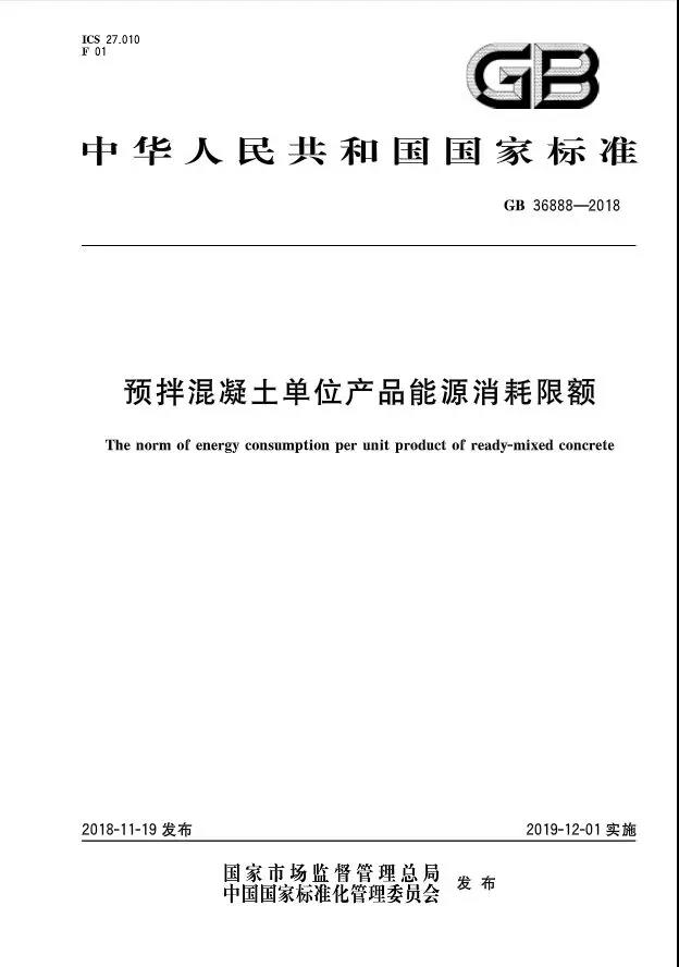 12月1日起實(shí)施預(yù)拌混凝土單位產(chǎn)品能源消耗限額 GB 36888-2018