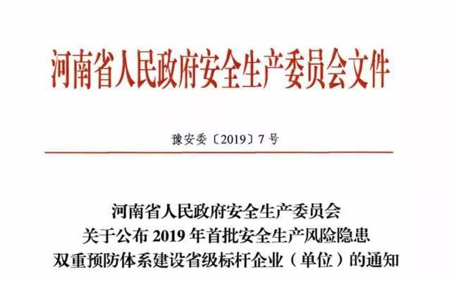 河南省應(yīng)急管理廳官網(wǎng)發(fā)布的豫安委【2019】7號(hào)文顯示,河南省煤氣集團(tuán)公司義馬氣化廠名列河南省“2019年首批安全生產(chǎn)風(fēng)險(xiǎn)隱患雙重預(yù)防體系建設(shè)省級(jí)標(biāo)桿企業(yè)”,是河南省內(nèi)72家企業(yè)(單位)之一。文件發(fā)布日期為今年7月9日。