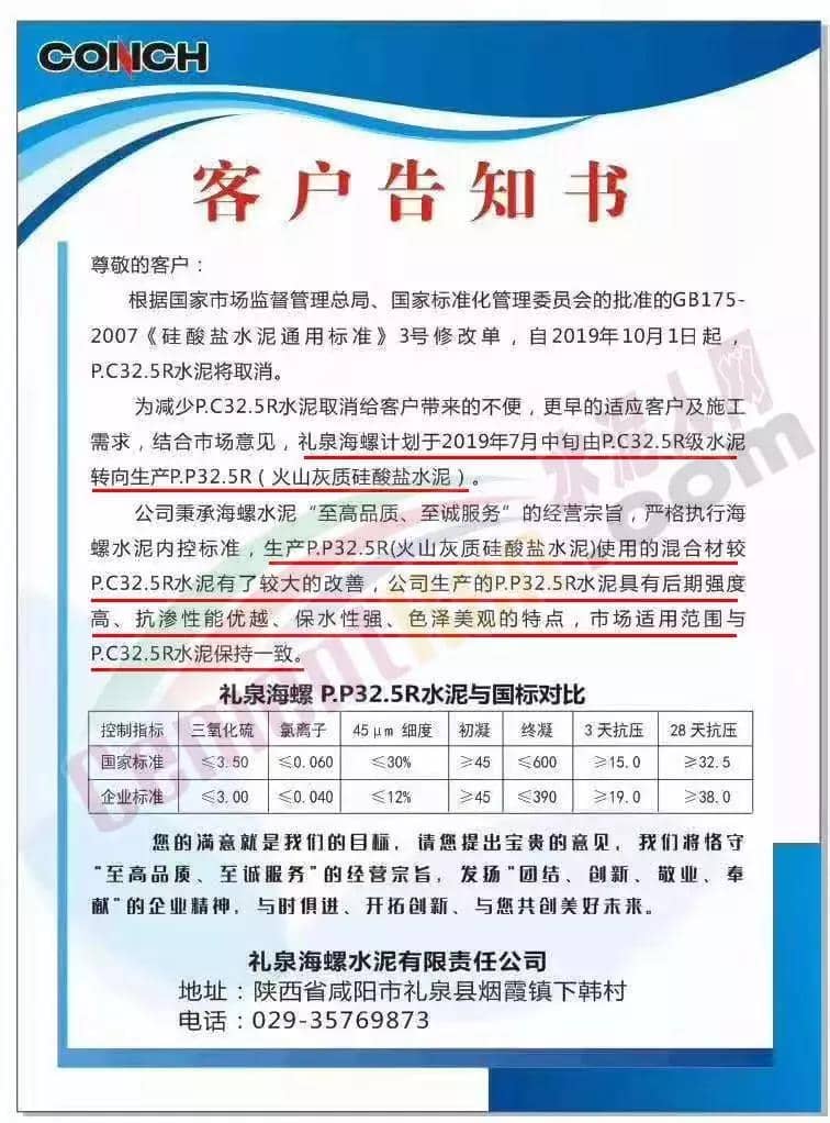 月初陜西聲威建材集團有限公司首先發(fā)布《關(guān)于取消復(fù)合32.5R水泥和生產(chǎn)、銷售砌筑32.5(M32.5)水泥的告用戶書》。
