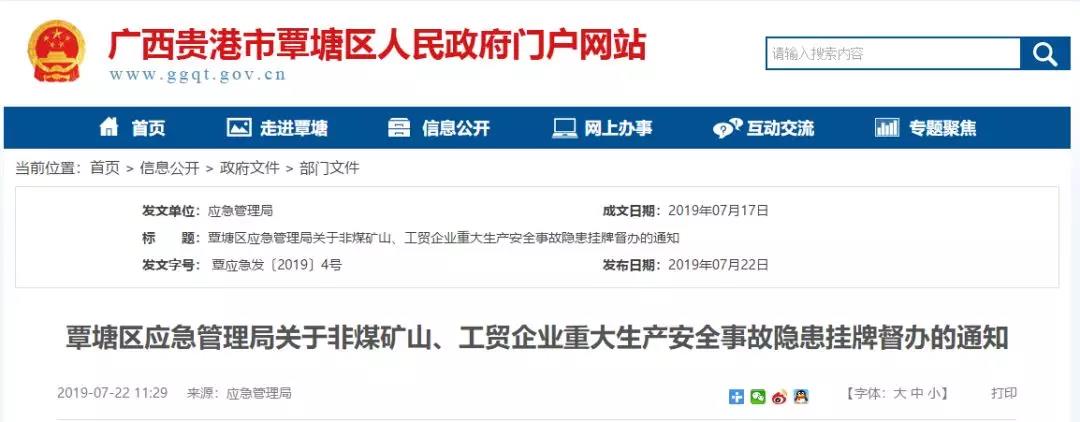 根據(jù)《安全生產事故隱患排查治理暫行規(guī)定》(原安監(jiān)總局令第16號)的有關規(guī)定,廣西貴港市覃塘區(qū)應急管理局對重大生產安全事故隱患進行掛牌督辦。并對重大生產安全事故隱患的整改提出要求各有關企業(yè)高度重視檢查發(fā)現(xiàn)的隱患和隱患整改工作,嚴格落實安全生產主體責任,對重大生產安全事故隱患要制定具體整改方案,每條隱患的整改責任要落實到具體人員,做到措施、責任、資金、時限和應急預案“五落實”,確保整改到位。