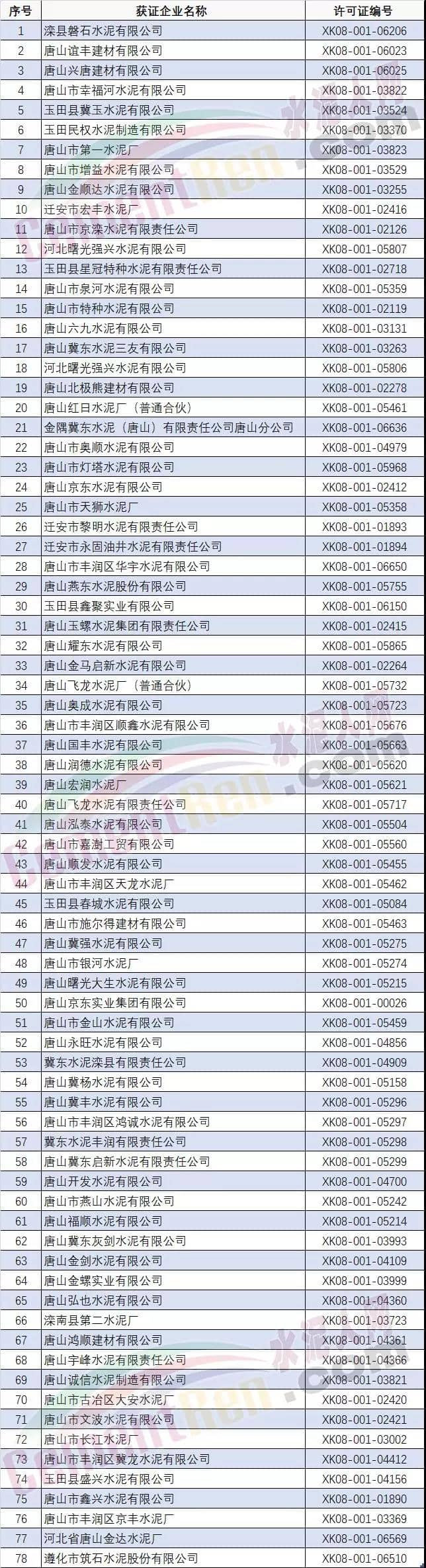 附唐山市部分水泥企業(yè)名單:
