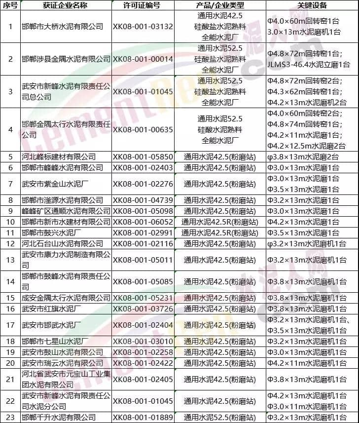 河北邯鄲水泥企業(yè)名單