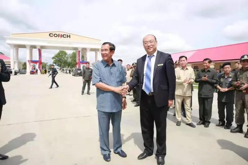 2018年5月31日,柬埔寨王國首相洪森出席馬德望海螺投產(chǎn)剪彩儀式,現(xiàn)場與丁鋒親切握手。