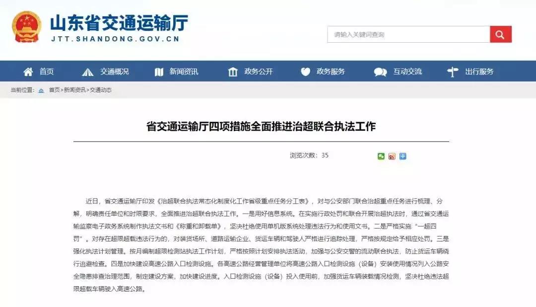 山東省要求嚴(yán)格執(zhí)法,同時(shí)嚴(yán)格監(jiān)督執(zhí)法人員:在實(shí)施處罰時(shí),應(yīng)通過(guò)省交通系統(tǒng)統(tǒng)一的聯(lián)網(wǎng)《稱重和卸載單》,堅(jiān)決杜絕使用單機(jī)版系統(tǒng)處理違法行為和使用文書。