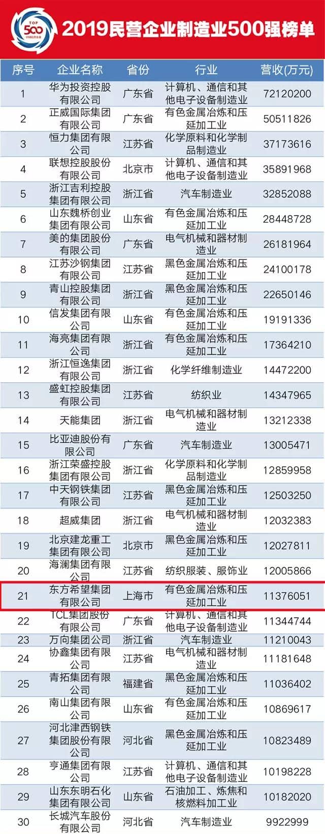 本次入選“2019中國(guó)民營(yíng)企業(yè)500強(qiáng)”、“2019中國(guó)民營(yíng)企業(yè)制造業(yè)500強(qiáng)”,是東方希望集團(tuán)堅(jiān)定走高質(zhì)量發(fā)展道路,積極踐行創(chuàng)新、協(xié)調(diào)、綠色、開放、共享的新發(fā)展理念、加快轉(zhuǎn)型升級(jí)取得的“綠色”成果之一。