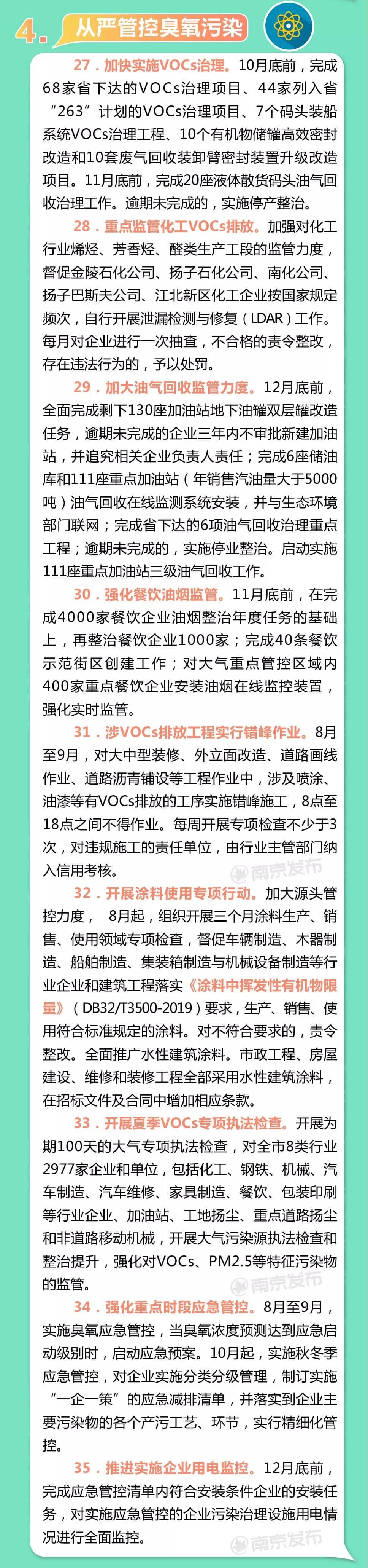 8月9日,南京市出臺《2019年下半年南京市大氣污染防治攻堅措施》堅持“能用盡用、能快則快、能實必實、能嚴盡嚴”的原則,針對工業(yè)污染、車船污染、揚塵污染和臭氧污染4項影響南京空氣質(zhì)量的主要污染源 對癥下藥制定了40條從嚴管控措施 。力爭在本年度剩下的月份提升空氣質(zhì)量讓南京人看到更多藍天。