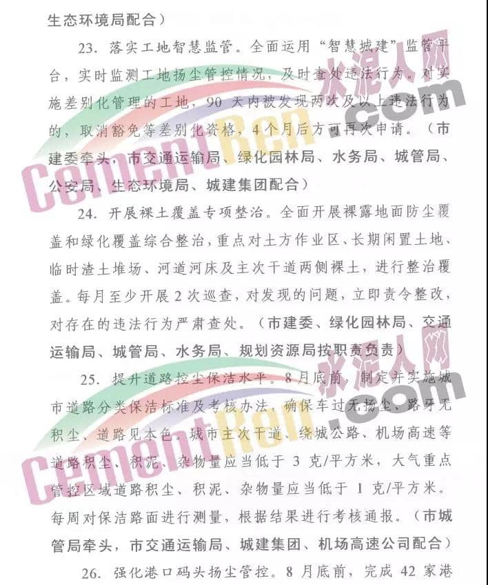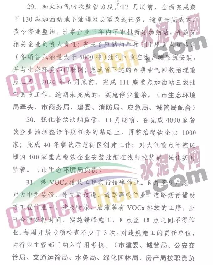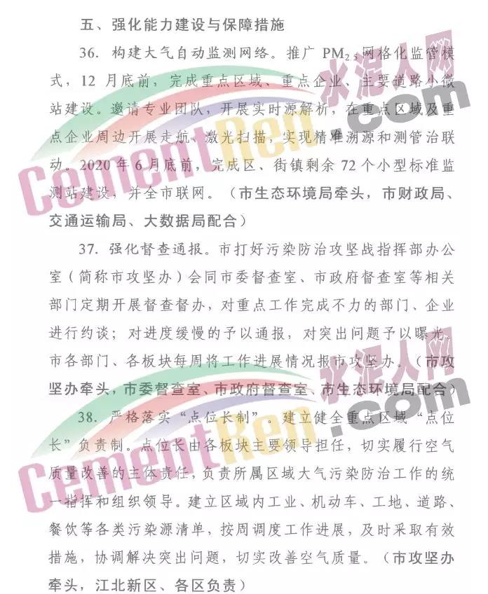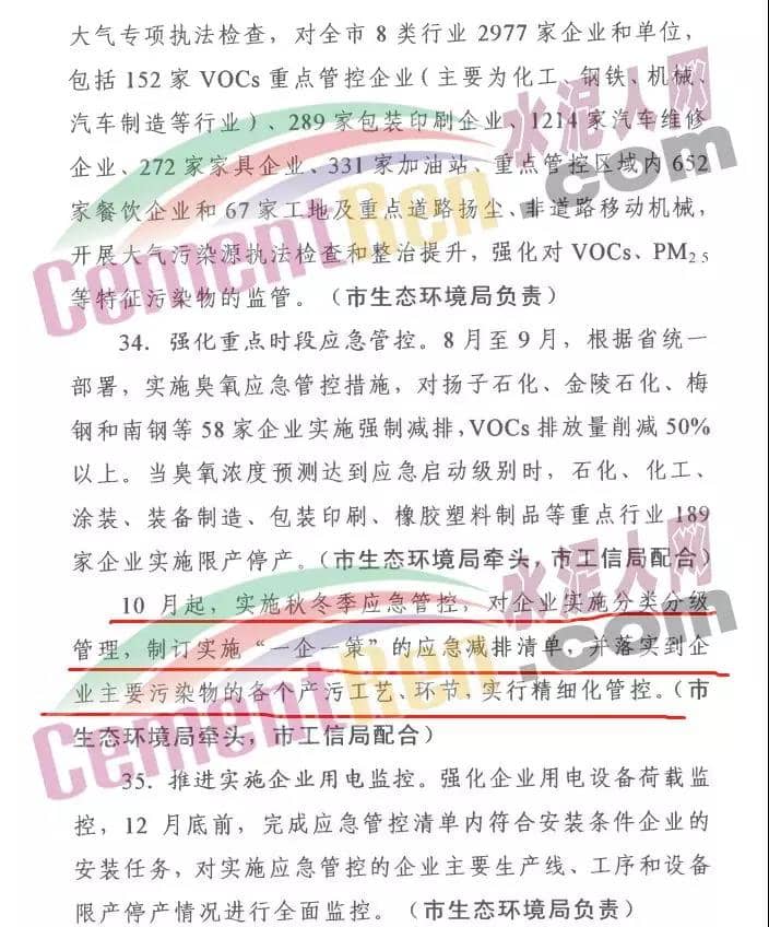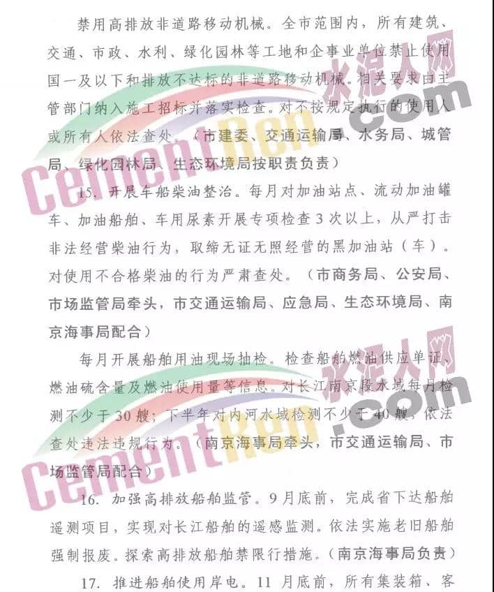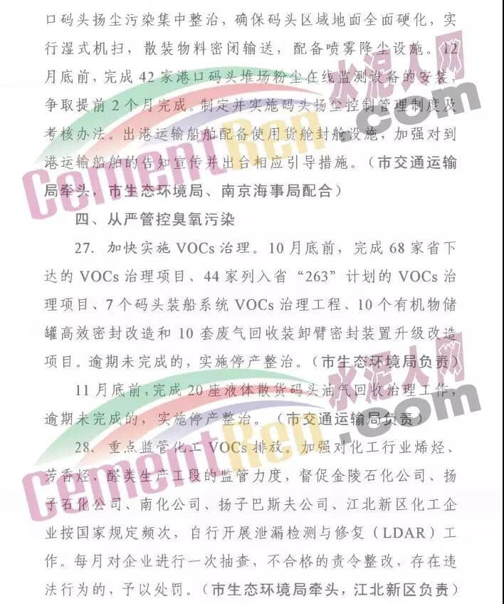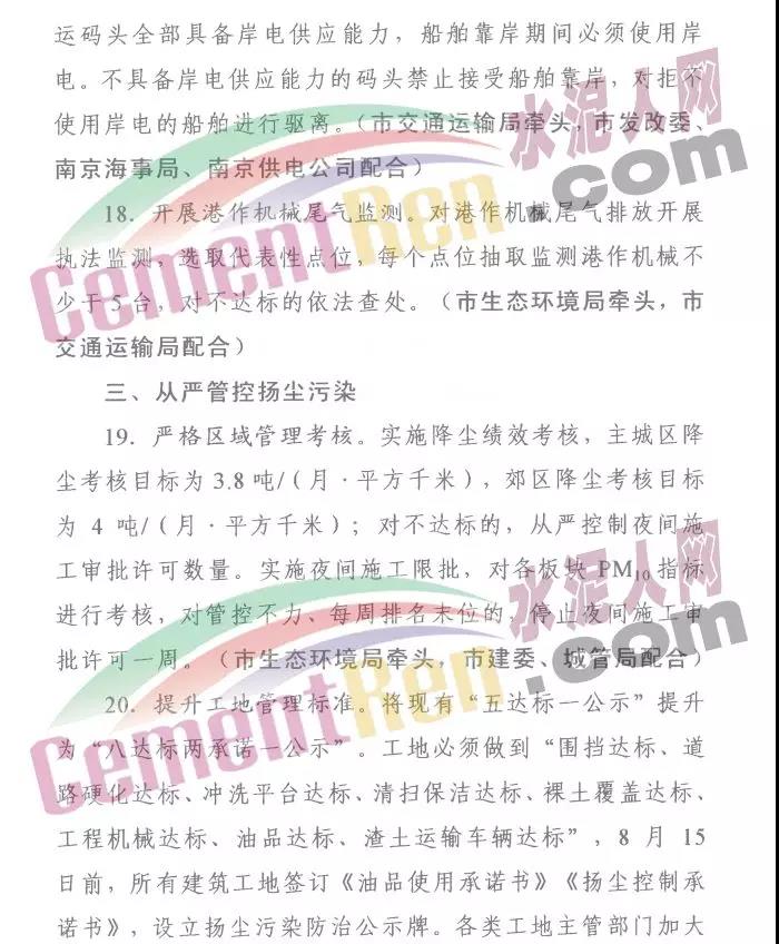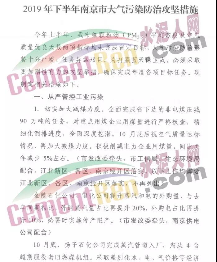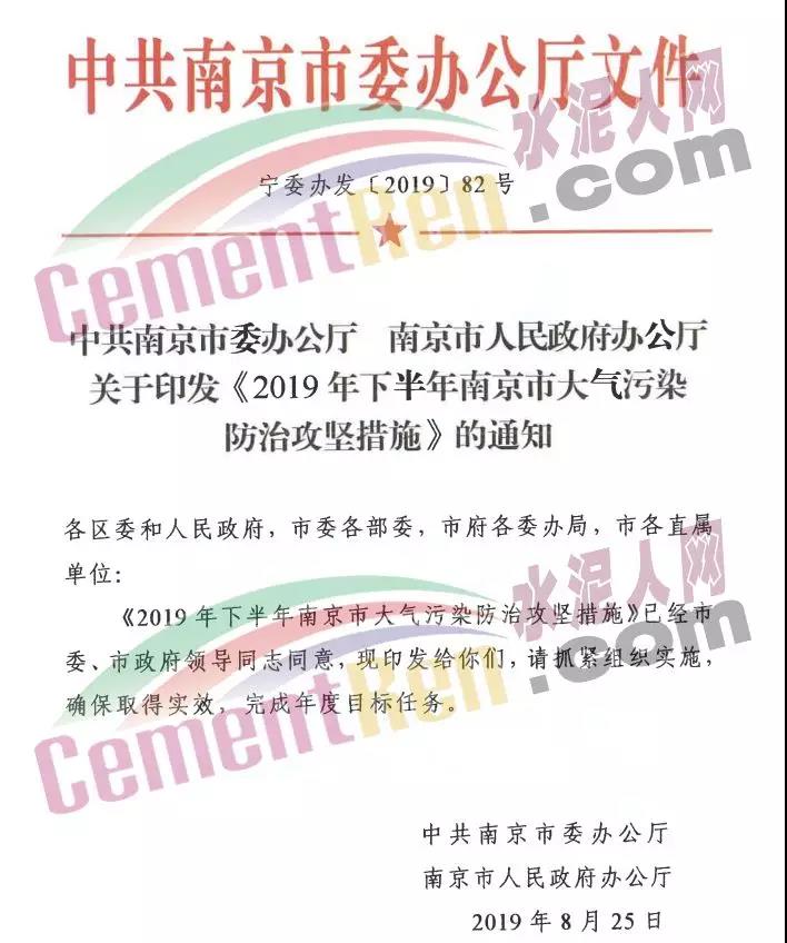 據(jù)水泥人網(wǎng)了解,近日,中共南京市委辦公廳 南京市人民政府公廳印發(fā)《2019年下半年南京市大氣污染防治攻堅(jiān)措施》,針對各行各業(yè)大污染防治工作提出如下要求: