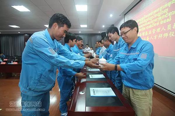 員工有了主動學習的意識,公司就適時推出了后備人才師徒結(jié)對、以中帶柬的個性化培養(yǎng)模式。拜師儀式上,20對中柬師徒一絲不茍。“希望柬籍徒弟尊師重教、勤奮好學,希望中籍師傅師道尊嚴、言傳身教。”總經(jīng)理助理昌俊對結(jié)對師徒諄諄教導。“去年第一批后備人才中,已經(jīng)有15人選拔到工段長、主管及技術(shù)員崗位,4人提拔到中控操作員崗位,我希望明年通過競聘的就是在座的各位。”