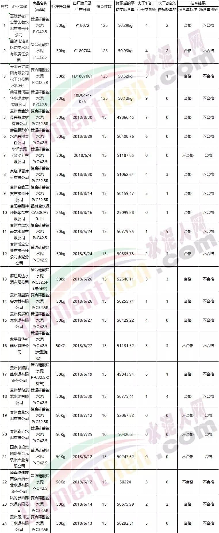 一直以來水泥行業(yè)的“瘦身水泥”、“分裝水泥”屢被詬病,2018年西南云貴區(qū)域?qū)iT針包裝水泥的凈重做了抽查。抽查結(jié)果顯示多家水泥企業(yè)袋重不足。
