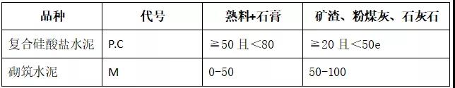 通用硅酸鹽水泥按混合材料的品種和摻量分為硅酸鹽水泥、普通硅酸鹽水泥、礦渣硅酸鹽水泥、火山灰質(zhì)硅酸鹽水泥、粉煤灰硅酸鹽水泥和復(fù)合硅酸鹽水泥。其中復(fù)合硅酸鹽水泥也就是以P.C為代號的水泥品種其熟料+石膏的組分要求為大于等于50%且小于80%。