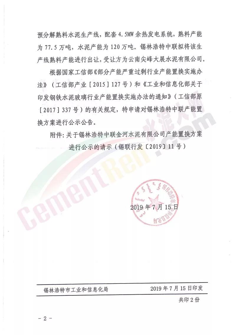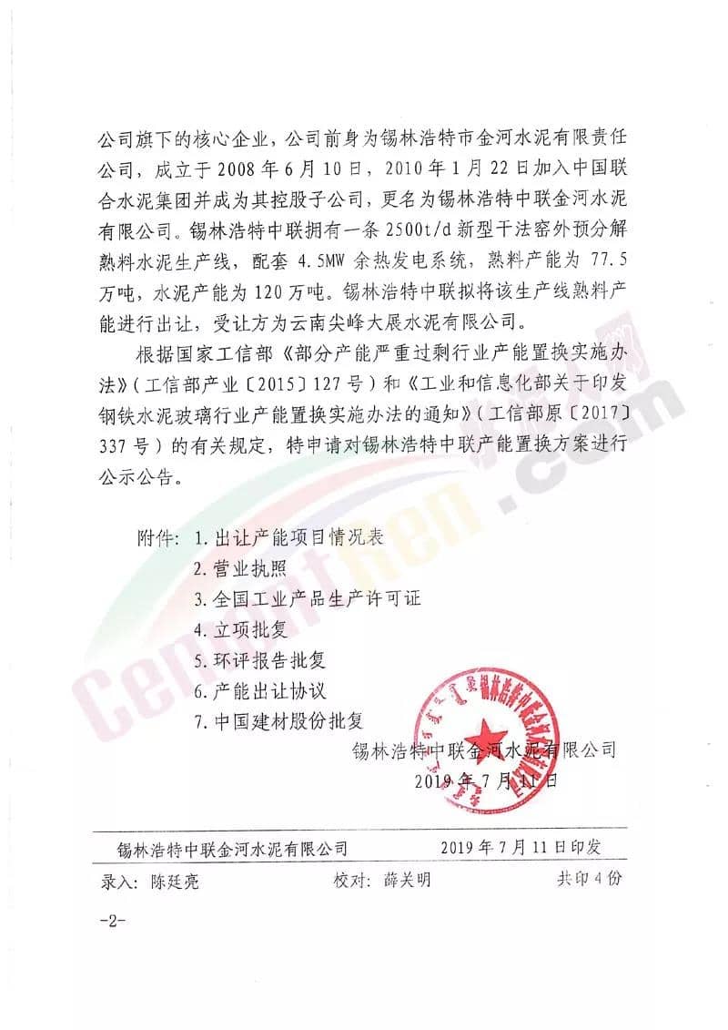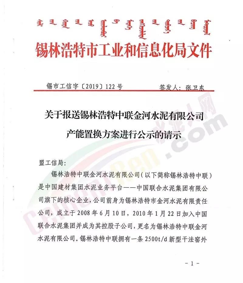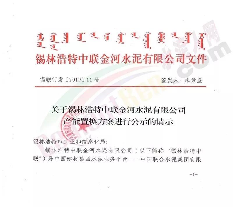 日前,內蒙古自治區(qū)工信廳發(fā)布《關于錫林浩特中聯金河水泥有限公司產能出讓的公示》稱,按照《國務院關于化解產能嚴重過剩矛盾的指導意見》和《水泥玻璃行業(yè)產能置換實施辦法》要求,對錫林浩特中聯金河水泥有限公司出讓一條日產2500噸新型干法水泥熟料生產線情況予以公示,公示期自公示日起五個工作日,并歡迎社會公眾進行監(jiān)督。公示原文如下: