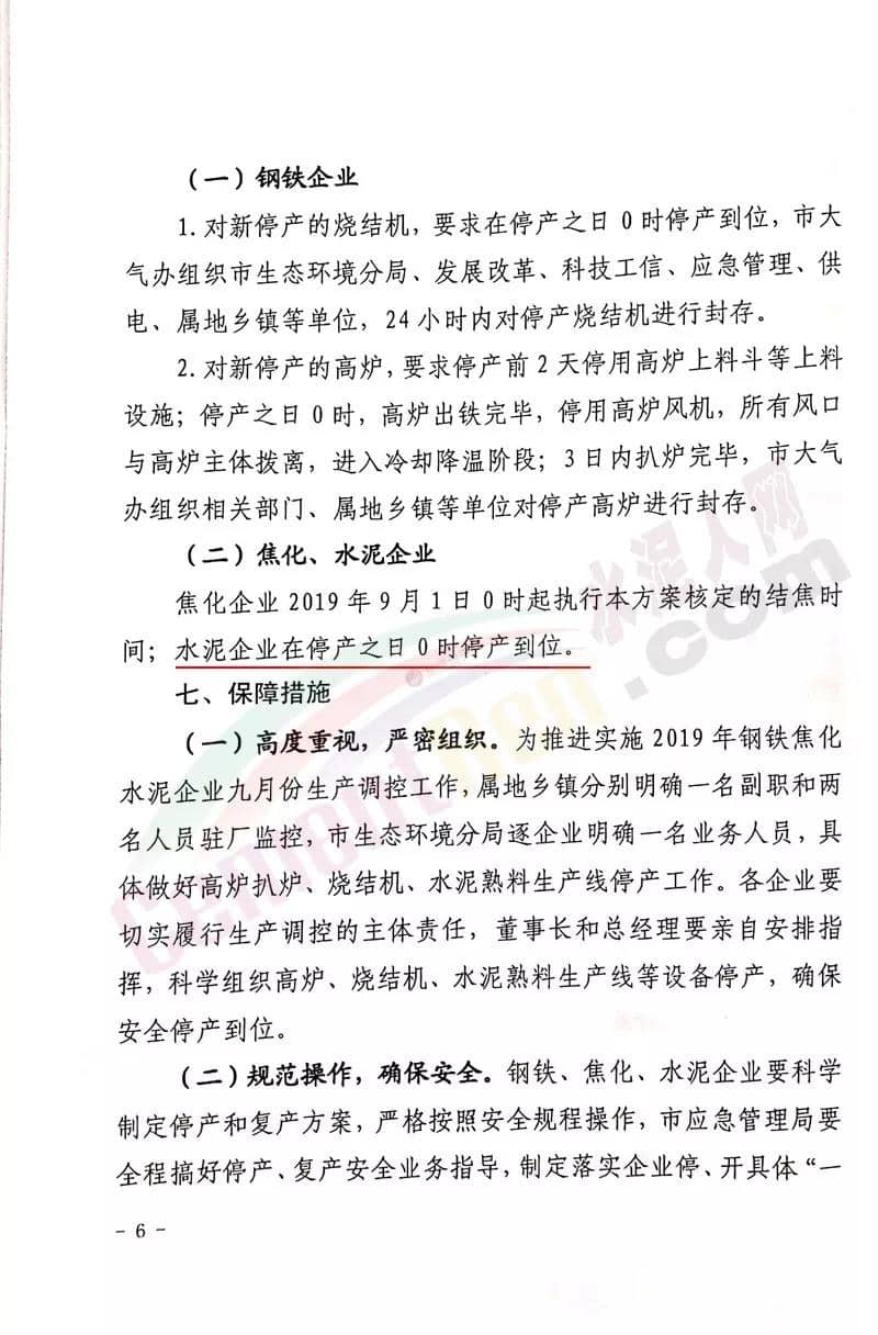 9月28日0時至10月4日24時,水泥熟料行業(yè)。耀東水泥按照城市污泥實際處置量保持最低負荷生產。全縣范圍的獨立石灰窯、粉磨站、磚瓦窯、鑄造、獨立軋鋼(含冷軋)企業(yè)停產。管控原則:允許生產的鋼鐵、焦化、水泥企業(yè)必須超低排放,其他工業(yè)企業(yè)必須達標排放。保障措施:鋼鐵、焦化、水泥等重點企業(yè)通過縣電視臺向社會公開9月份限產減排承諾。