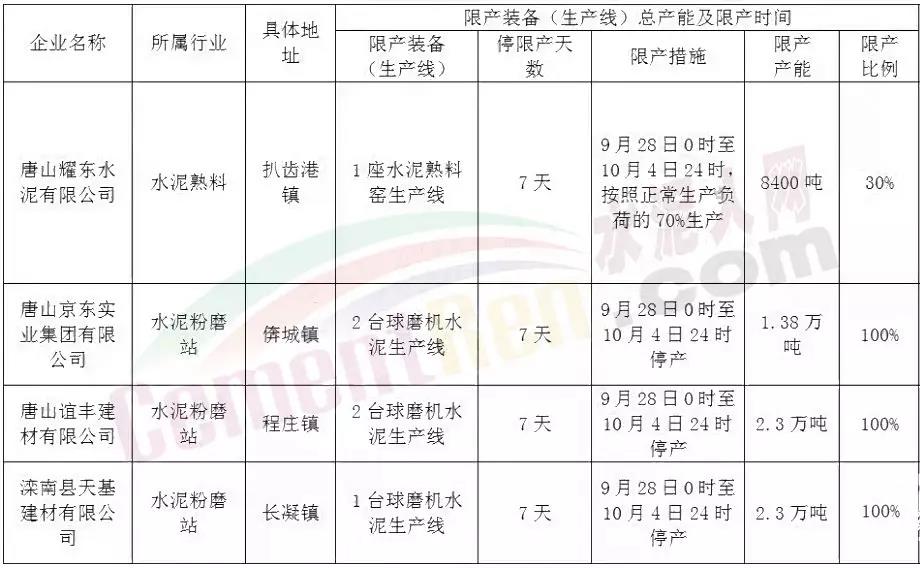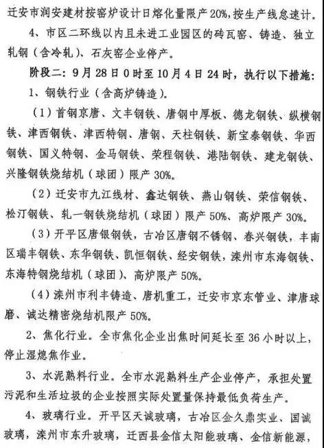 同期,唐山市相關部門發(fā)布通知稱根據氣象部門預測,9月2日20時至7日12時唐山市以偏東風為主,風力偏弱,夜間伴有5-6℃逆溫,整體擴散條件差。為降低污染傳輸影響,在嚴格落實9月份強化管控措施基礎上,9月2日18時至7日12時期間,執(zhí)行管控措。要求水泥行業(yè)企業(yè)一條水泥窯企業(yè)限產40%;兩條及以上水泥窯企業(yè)停一條水泥窯生產線。