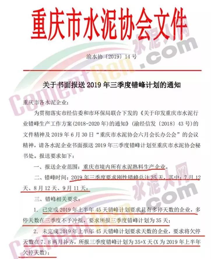 價(jià)格上漲原因?yàn)椋褐貞c地區(qū)水泥企業(yè)三季度要求剛性錯峰生產(chǎn)35天,其中7月12天、8月12天、9月11天,影響熟料約600萬噸。錯峰生產(chǎn)一方面抑制熟料產(chǎn)能,另外增加水泥單位生產(chǎn)成本,從而導(dǎo)致水泥價(jià)格上漲。