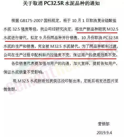 同期,普洱昆鋼嘉華水泥建材有限公司采取多種形式告知客戶,將于2019年9月26日停止生產(chǎn)P.C32.5R水泥,改生產(chǎn)銷售M32.5砌筑水泥。