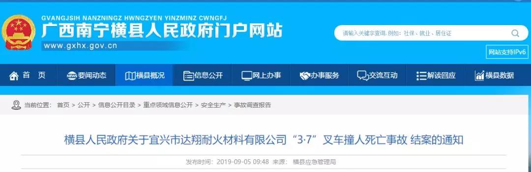 根據(jù)國務(wù)院《生產(chǎn)安全事故報告和調(diào)查處理條例》的規(guī)定和縣人民政府的授權(quán),縣應(yīng)急管理局牽頭成立了由縣公安局、人力資源和社會保障局、總工會等部門共同組成宜興市達(dá)翔耐火材料有限公司“3·7”叉車撞人死亡事故調(diào)查組,同時邀請縣監(jiān)察委派員參加事故調(diào)查。經(jīng)事故調(diào)查組調(diào)查取證,查明了事故發(fā)生的經(jīng)過和原因,分清了事故責(zé)任,并對事故相關(guān)單位及其相關(guān)責(zé)任人提出了處理建議和防范措施,形成了事故調(diào)查報告,并經(jīng)第十七屆橫縣人民政府第86次常務(wù)會議審議通過。現(xiàn)將事故結(jié)案的有關(guān)事項通知如下: