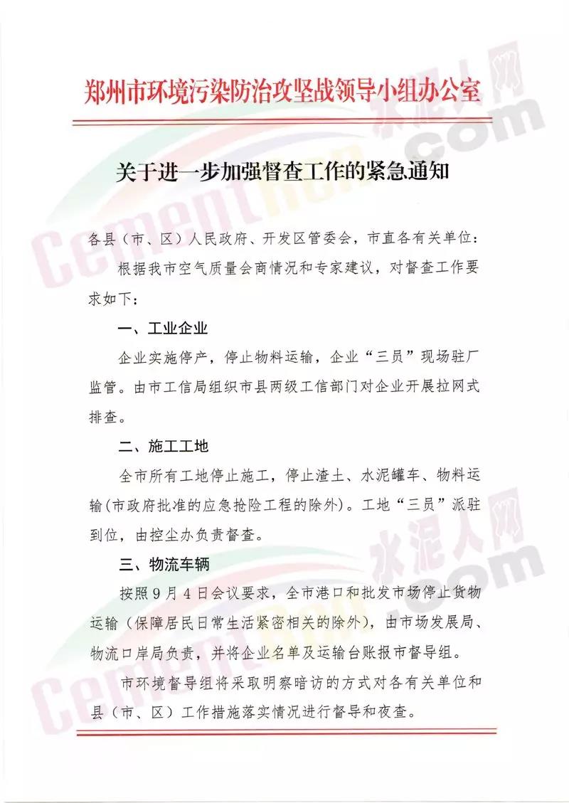 同期,鄭州市環(huán)境污染防治攻堅戰(zhàn)領導小組辦公室發(fā)布了《關于進一步加強督查工作的緊急通知》通知稱根據(jù)鄭州市空氣質(zhì)量會商情況和專家建議,對督查工作提出要求。