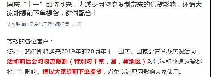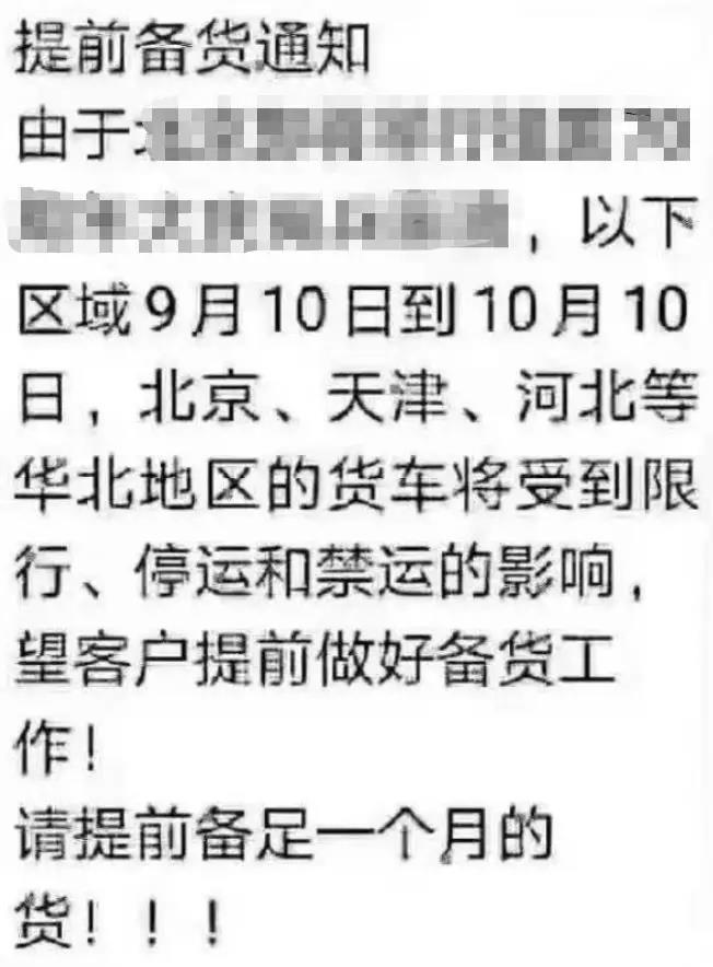 另外,京津冀周邊各大企業(yè)表示:由于十一臨近,河北、天津、北京等華北地區(qū)的貨車(chē)將受到限行、停運(yùn)、禁運(yùn)的影響。